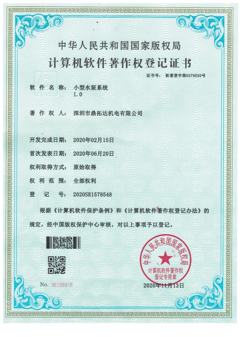 首頁->產品認證->小型水泵系統v1.0